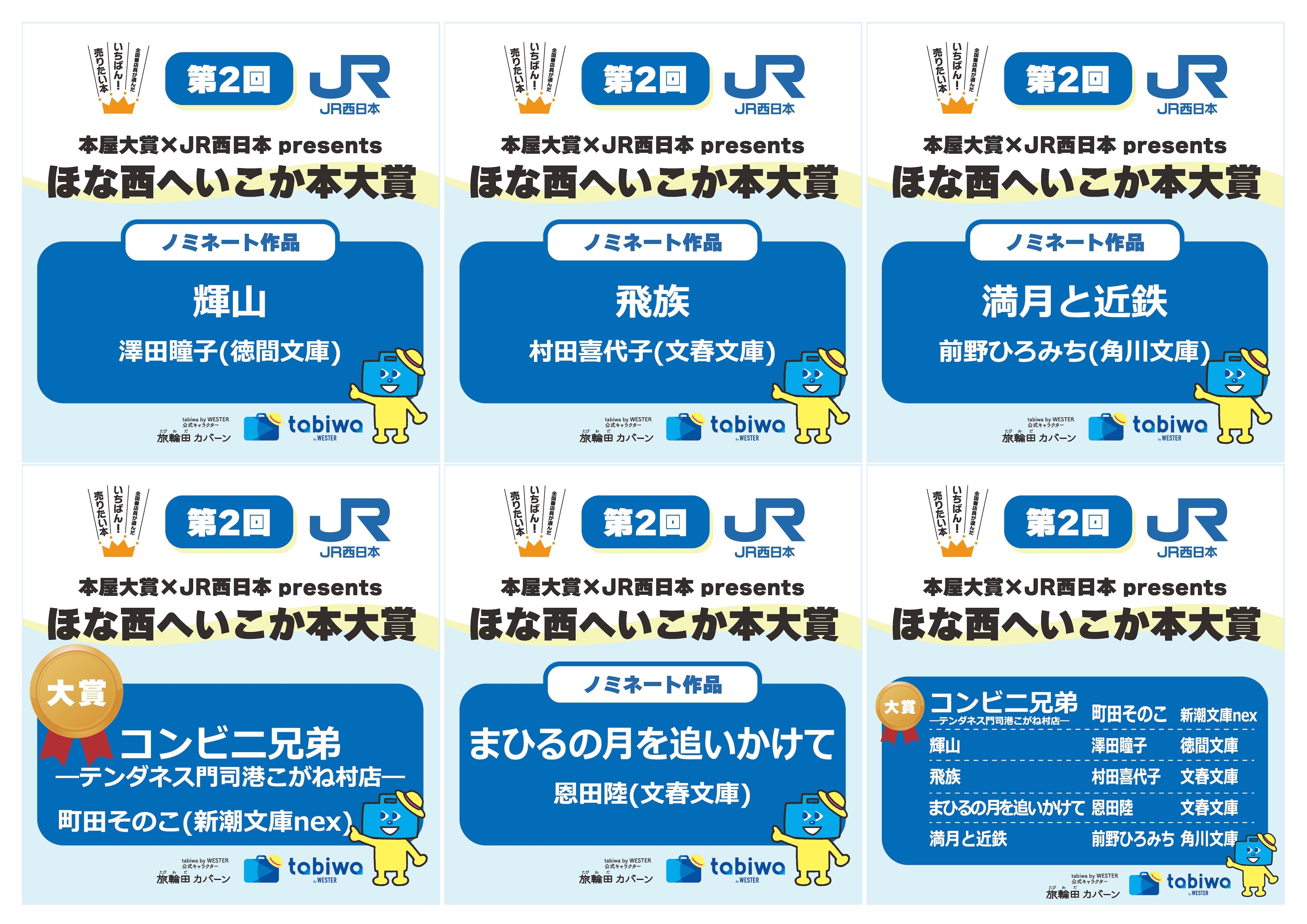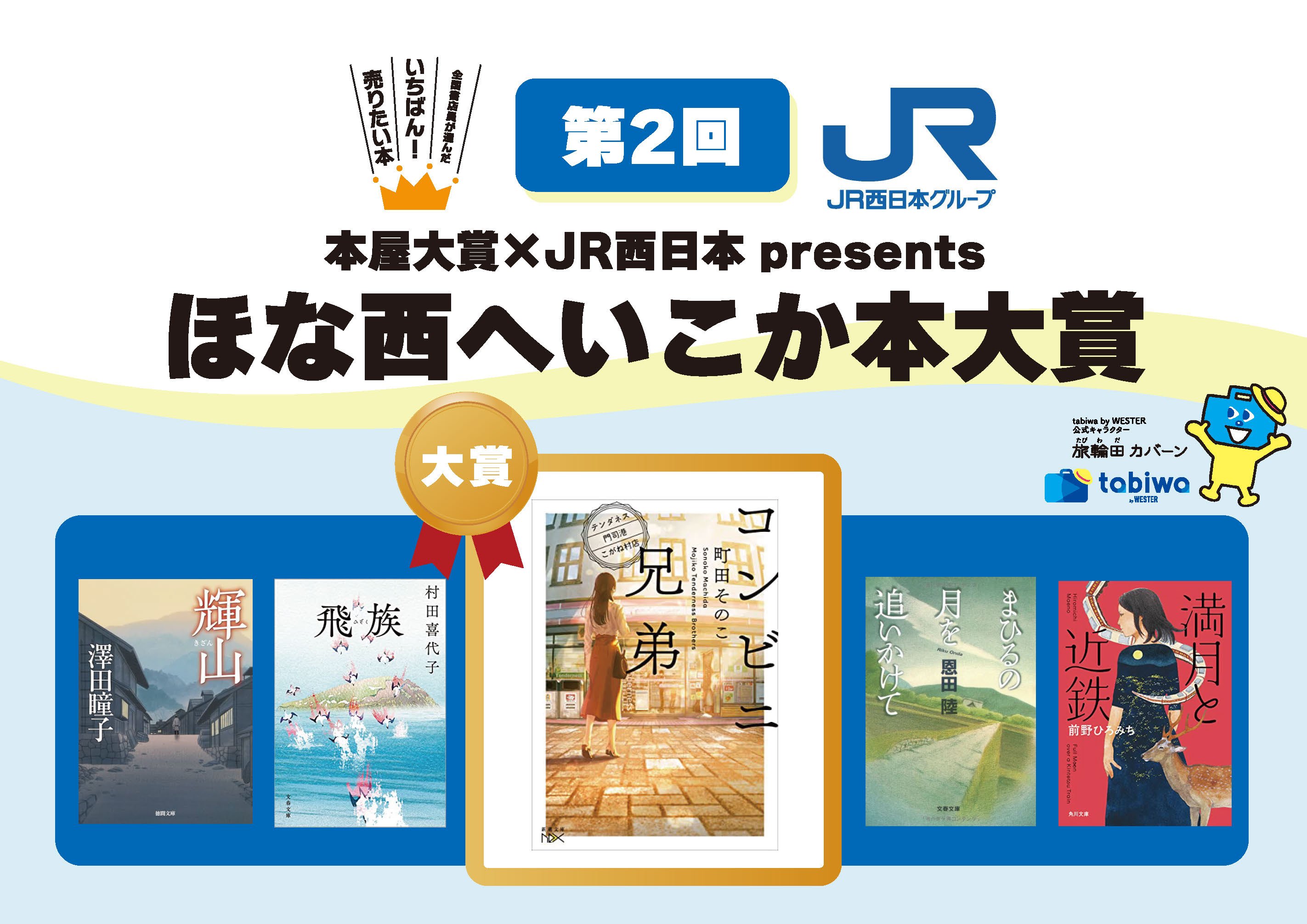 大賞発表は2025年12月上旬に、本屋大賞公式サイトおよび tabiwa公式SNS(Instagram・X:@tabiwa_official)で発表いたします。また、JR西日本管内の電車内広告での告知も行います。