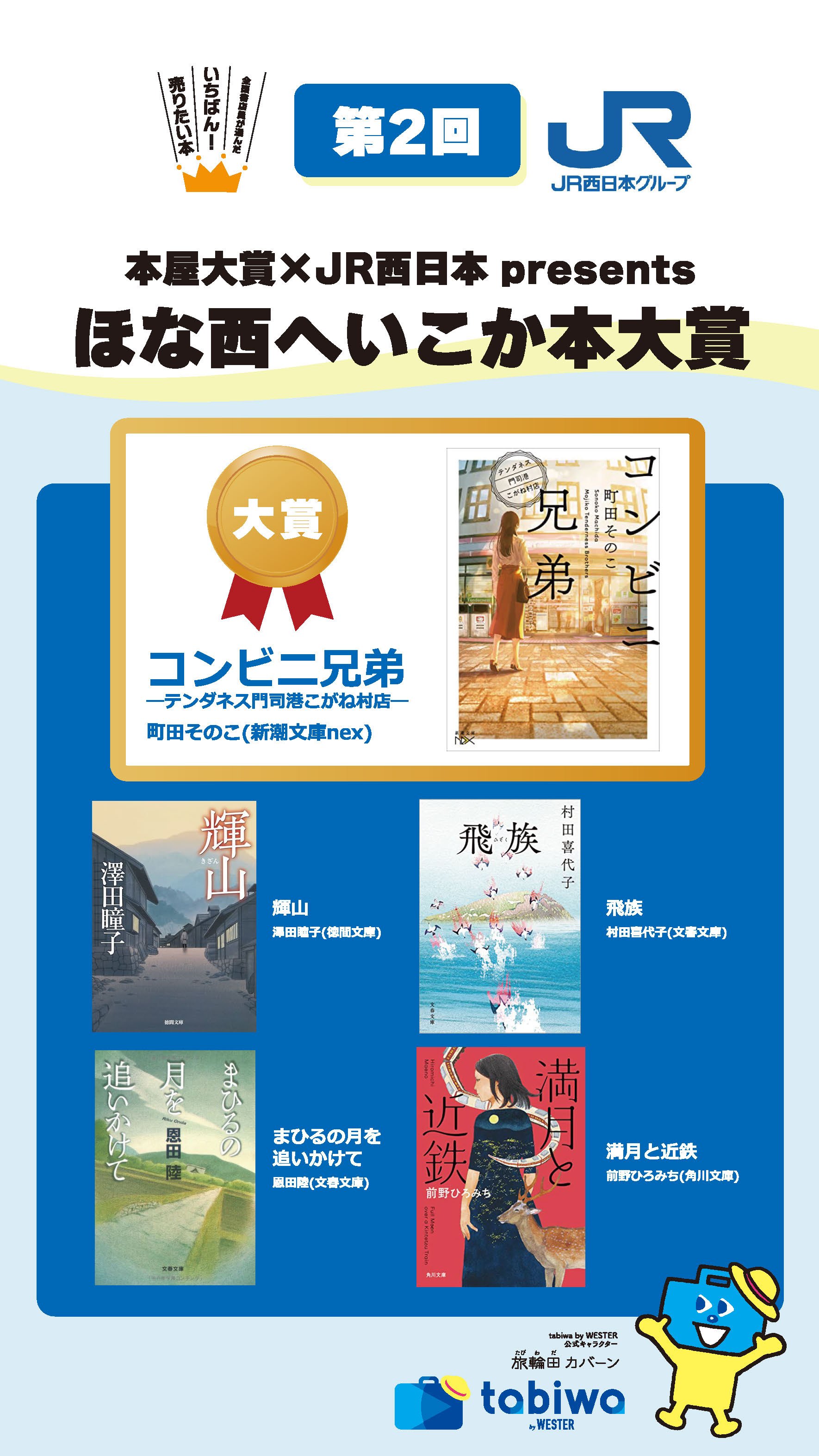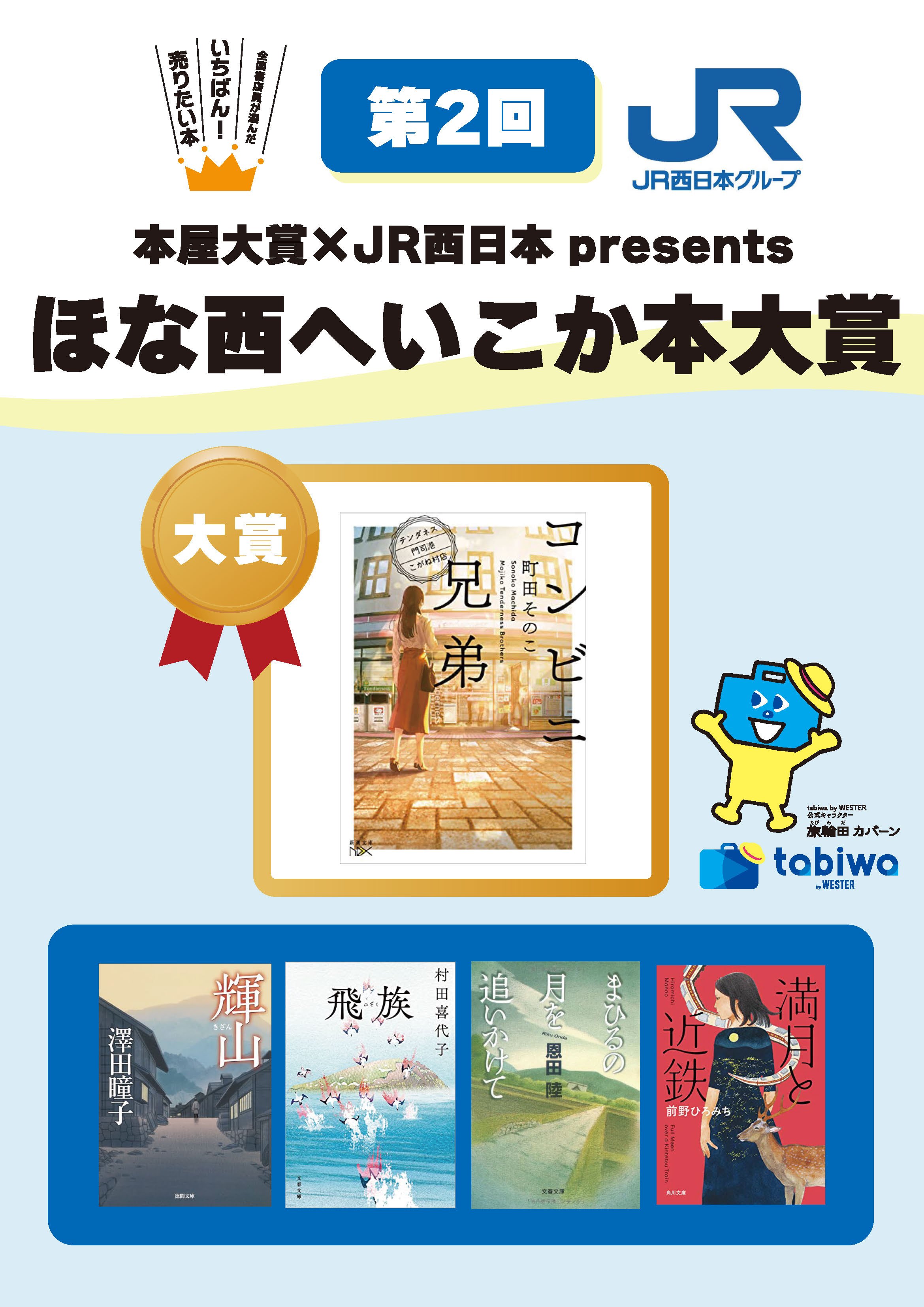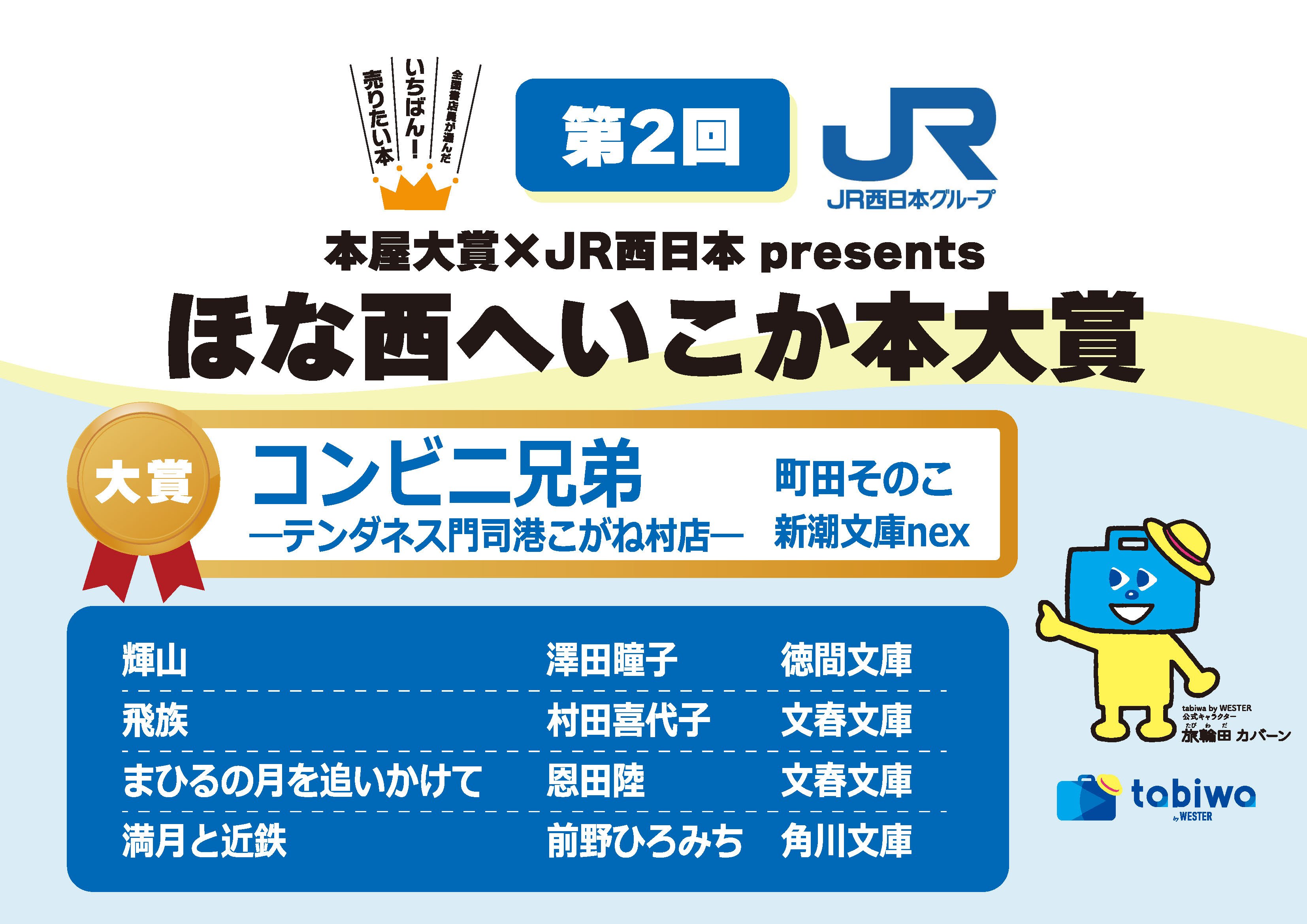 本賞は、全国書店員の皆様の投票によって、"読むと西エリア(関西・北陸・せとうち・山陰・九州)のどこかへ旅にでかけたくなる日本の「文庫本」小説"を決定する文学賞です。