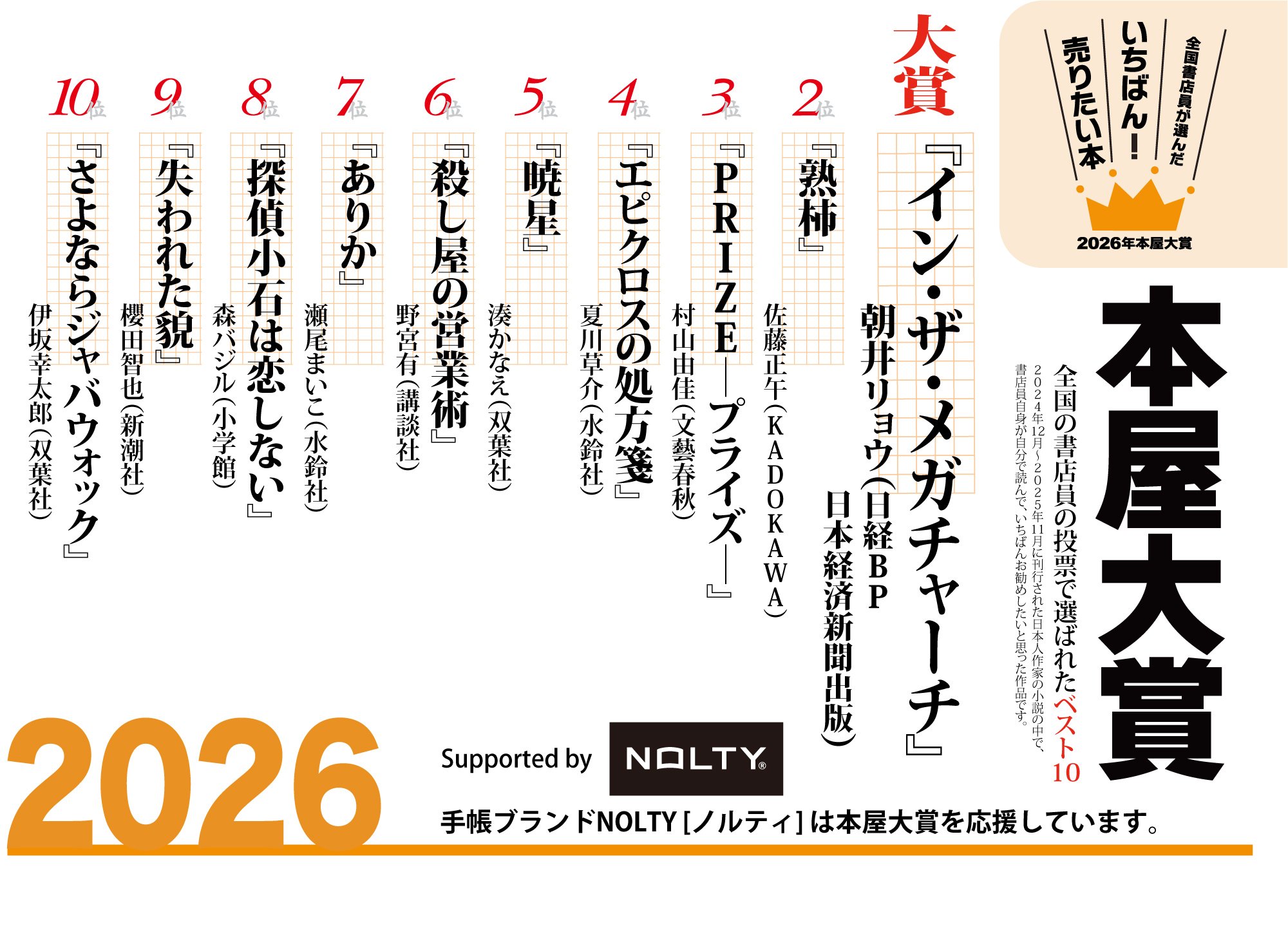 2026年本屋大賞の店頭フェア用グッズとして、看板ポスター、順位ボードを作りました。